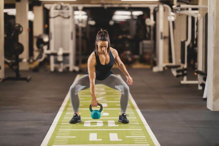 Push your hips back, maintain a neutral spine, and squeeze your glutes as you stand tall. The kettlebell should stay close to your body during the lift.